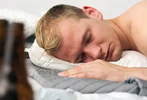 Alkohol gør dig søvnig, så du sandsynligvis falder i søvn lettere. Men alkohol gør ondt i søvnkvaliteten. Dit system metaboliserer alkohol, mens du sover. Når det er ude af dit system, vil du sandsynligvis vågne op og kaste og dreje. Alkohol forringer REM -søvn Den type, du har brug for for at føle dig godt udhvilet og gendannet. Alkohol øger også risikoen for mareridt og levende drømme. Du kan også vågne op for at bruge toilettet oftere.