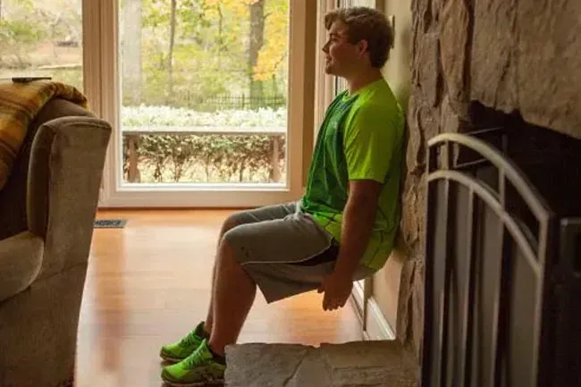 Stå med ryggen mod en væg. Sæt dine fødder skulderbredde fra hinanden og væk fra væggen. Skub langsomt ryggen ned ad væggen. Det kan tage tid, men arbejde for at være i stand til at komme til det punkt, hvor dine lår er parallelle med gulvet - som om du sidder i en stol. Hold i 5 til 10 sekunder. Hold længere, når du bliver stærkere.