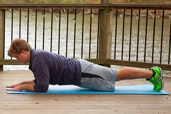 Når du først kan gøre det temmelig let at gå videre til den hårdere version. Din mave tilbage og røvmuskler hjælper din holdning. Arbejd dem med dette træk - ingen crunches er nødvendige! Knæl på en måtte. Sæt dine underarme på jorden. Skub dine ben ud bag dig og balance på tæerne. Klem dine mave- og røvmuskler for at holde din krop i en lige linje. Kran ikke hovedet op eller lad det hænge ned. Hold din hals på linje med din rygsøjle. Hold i 5 sekunder. Gentag 3-5 gange. Tilføj mere tid, når du bliver stærkere. Hold altid din kerne tæt. Gør dette 3 til 5 gange om ugen.