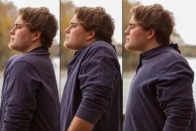 Som det kan få dig til at læne dig frem. Det kan få din hals til at blive stram og give dig hovedpine. Dette træk kan styrke din hals for at holde dig lodret og lindre tætheden.