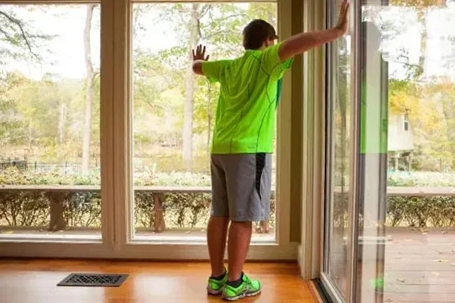 Find et hjørne og stå mod det. Løft armene op. Hvil håndfladerne på væggene. Tryk forsigtigt dit bryst mod hjørnet. Dine arme giver spænding. Du føler strækningen over fronten af dit bryst. Langs ryggen føler du dine skulderblade bevæge sig mod hinanden. Hold i 20 til 30 sekunder.