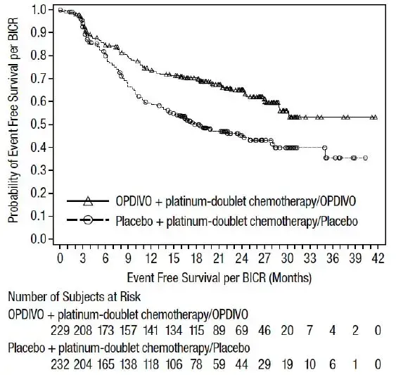- For NSCLC, før du har operation, gives opdivo i kombination med platinholdig kemoterapi og en anden kemoterapimedicin hver 3. uge i 3 cykler. I nogle tilfælde bruges OPDIVO i kombination med kemoterapi hver 3. uge i op til 4 cyklusser, før du har operation efterfulgt af OPDIVO, der bruges alene hver 4. uge efter, at du har opereret i op til 1 år.