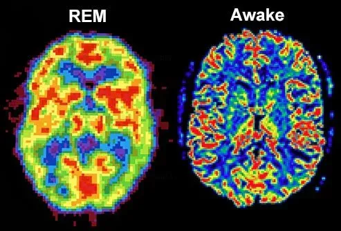 Når du lukker øjnene og begynder at drive ind i ikke-REM-søvn, sætter dine hjerneceller sig ned fra deres aktivitetsniveauer på dagen og begynder at skyde i et jævnt mere rytmisk mønster. Men når du begynder at drømme, at dine hjerneceller skyder aktivt og tilfældigt. Faktisk i REM Sleep Brain Brain Activity ligner når du er vågen.